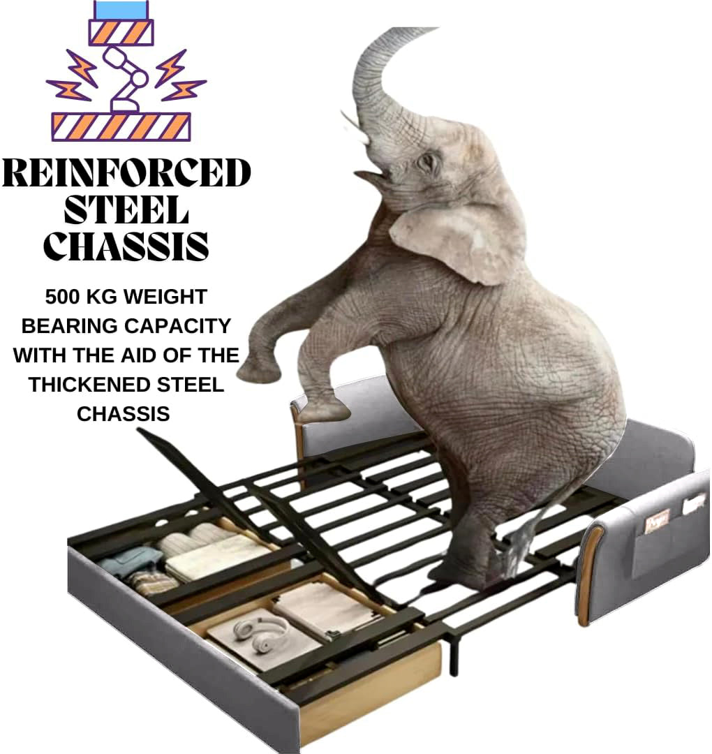 DURABLE FRAME AND SOLID ARMRESTSConvertible Sofabed is Built for durability with a solid, non-rust metal frame and reinforced steel chassis base. Padded armrests ensure added comfort. In weight bearing capacity, this sofa bed supports up to 500kg, making it perfect for everyday use.